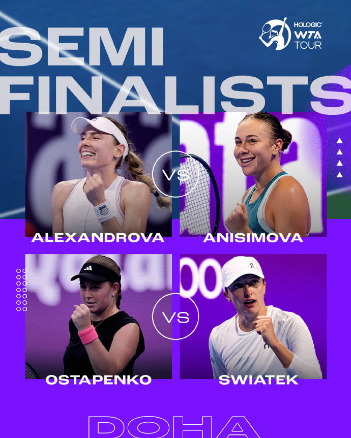 北京时间今晨,WTA 1000多哈站结束了单打八强战,四强席位全部产生。在一场焦点对决中,2号种子、卫冕冠军斯瓦泰克与5号种子、哈萨克斯坦名将莱巴金娜激战两盘,最终以6-2 7-5获得胜利,职业生涯第十八次晋级1000赛四强,这也是斯瓦泰克职业生涯取得的1000赛第100胜。同时,她也把与莱巴金娜的交手记录扳为4-4平。