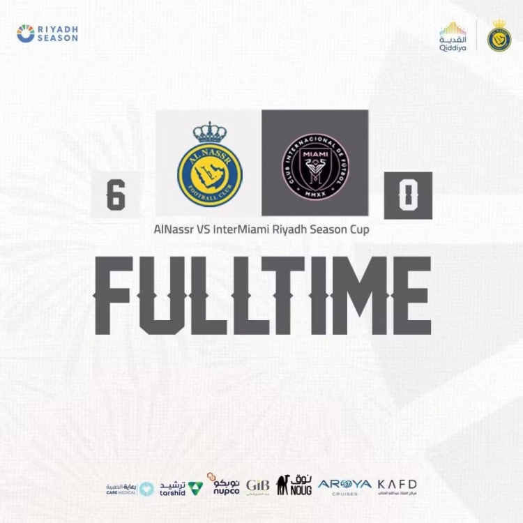 而就在1年前,C罗所在的利雅得胜利和梅西所在的迈阿密国际进行过一场友谊赛,最终利雅得胜利6-0大胜,塔利斯卡戴帽,C罗因伤缺席,梅西第83分钟替补登场。